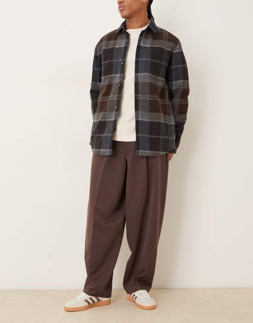 ASOS DESIGN – Eleganckie brązowe spodnie z szerokimi baryłkowymi nogawkami z zakładkami