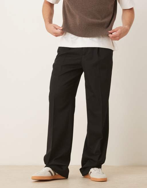 ASOS DESIGN – Eleganckie czarne spodnie z bardzo długimi szerokimi nogawkami i zakładkami