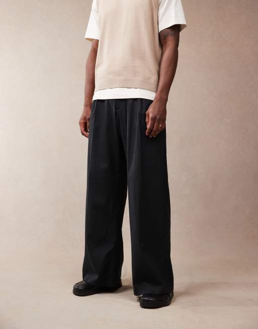 ASOS DESIGN – Eleganckie czarne spodnie z mieszanki lnu o luźnym kroju z zakładkami z przodu