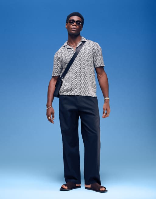 ASOS DESIGN – Eleganckie czarne spodnie z mieszanki lnu z szerokimi nogawkami i zakładkami z przodu