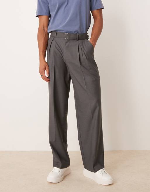 ASOS DESIGN – Eleganckie grafitowe spodnie z szerokimi nogawkami, zakładkami z przodu i paskiem