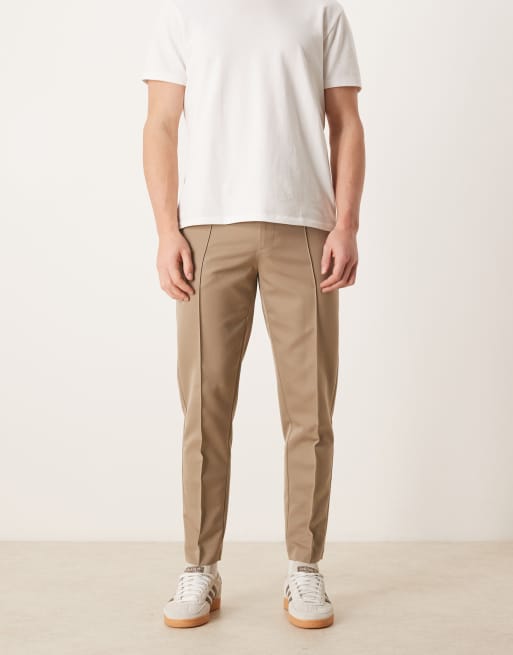 ASOS DESIGN – Eleganckie spodnie ze zwężanymi nogawkami i zaszewkami w kolorze khaki
