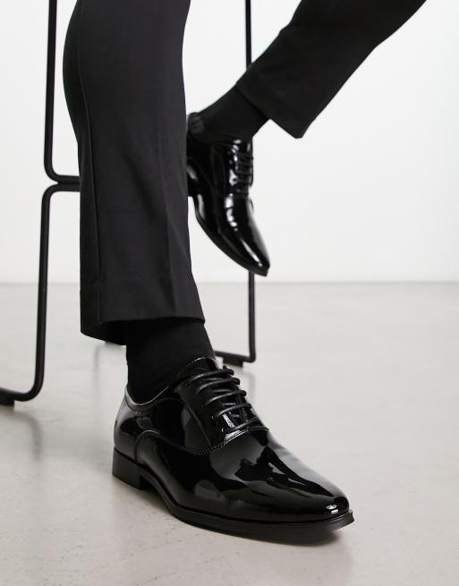 ASOS DESIGN – Eleganckie sznurowane buty z czarnej lakierowanej imitacji skóry