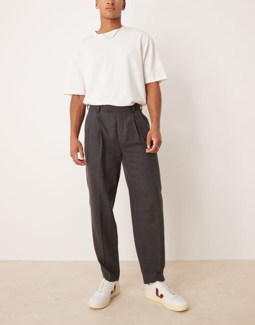 ASOS DESIGN – Eleganckie zwężane grafitowe spodnie oversize z podwójnymi zakładkami o koszykowym splocie