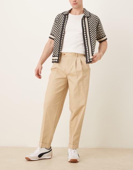 ASOS DESIGN – Eleganckie zwężane spodnie chinosy oversize z bawełny w szarobeżowym kolorze