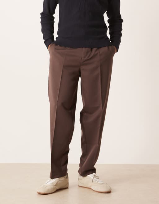 ASOS DESIGN – Eleganckie zwężane spodnie oversize z elastyczną talią w brązowym kolorze