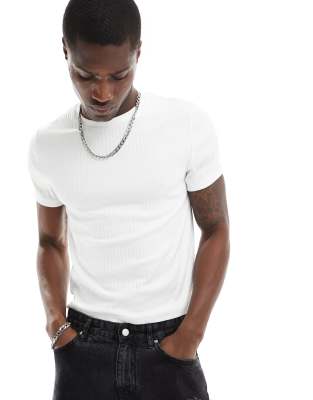 ASOS DESIGN – Essential – Biały prążkowany T-shirt o krótkim kroju podkreślającym sylwetkę