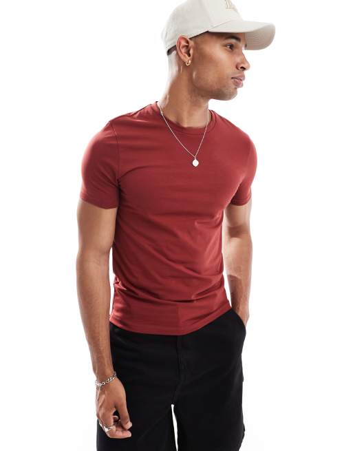 ASOS DESIGN – Essential – Bordowy T-shirt o kroju podkreślającym sylwetkę