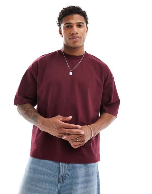 ASOS DESIGN – Essential – Gruby bordowy T-shirt oversize o pudełkowym kroju i gramaturze 240 g/m²