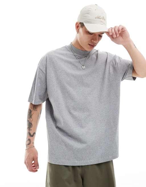 ASOS DESIGN – Essential – Szary melanżowy T-shirt oversize z zabudowanym dekoltem