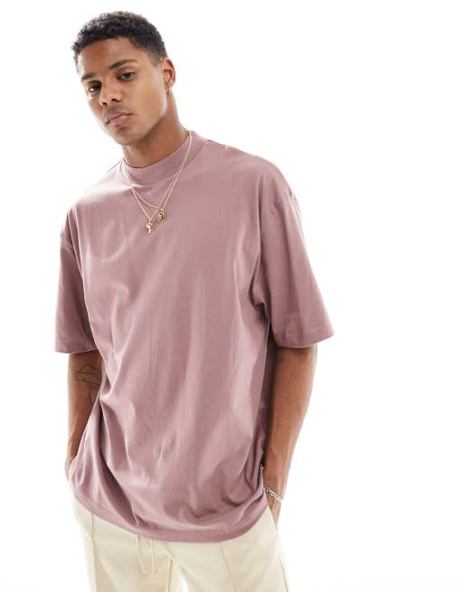 ASOS DESIGN – Essential – T-shirt oversize z zabudowanym dekoltem w zgaszonym różowym kolorze