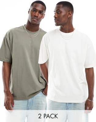 ASOS DESIGN – Essential – Zestaw 2 T-shirtów oversize w kolorach khaki i białym
