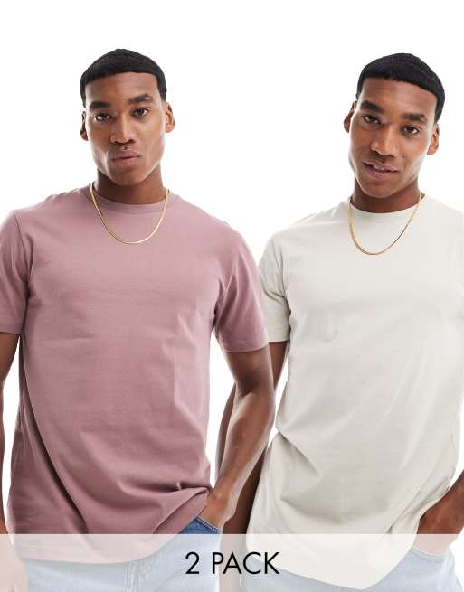 ASOS DESIGN – Essential – Zestaw 2 T-shirtów z okrągłym dekoltem w kolorach jasnobeżowym i różowym