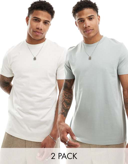 ASOS DESIGN – Essential – Zestaw 2 T-shirtów z okrągłym dekoltem w kolorach szarym i kremowym
