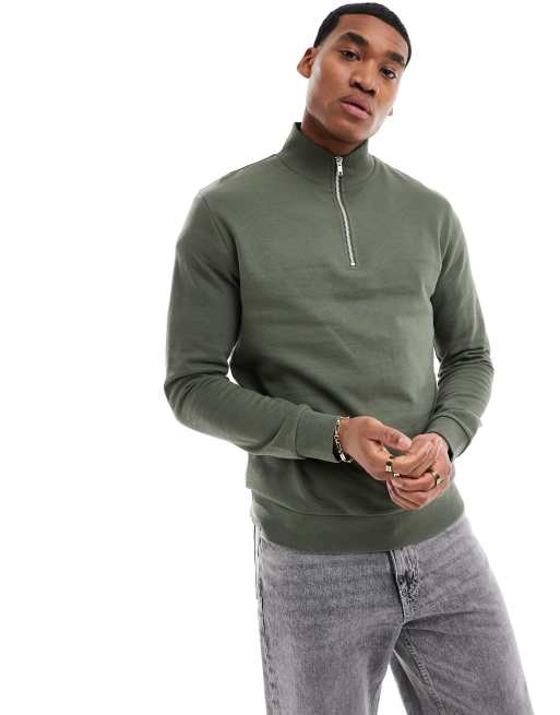 ASOS DESIGN – Essential – Zielona bluza z zamkiem pod szyją