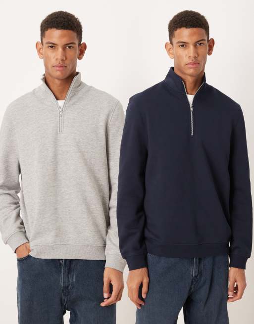 ASOS DESIGN Essentials – Zestaw 2 bluz z zamkiem pod szyją w kolorach granatowym i szarym melanżowym