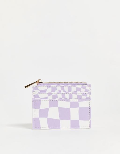 ASOS DESIGN – Etui na kartę z portmonetka na monety w liliową szachownicę