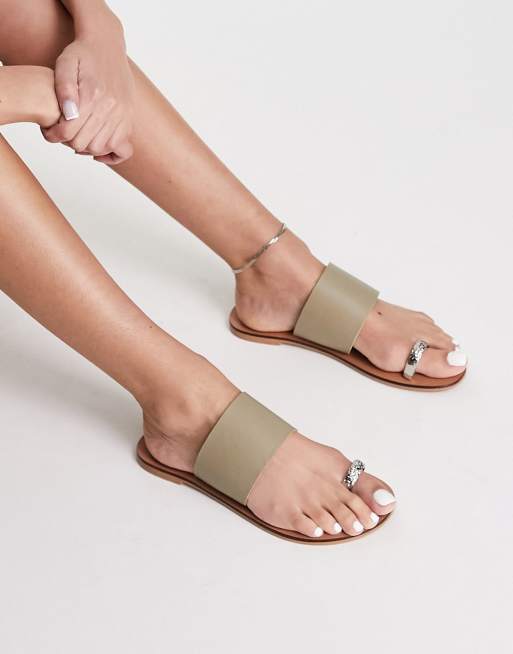 ASOS DESIGN – Fabian – Płaskie skórzane sandały z pętelką na palec w kolorze khaki