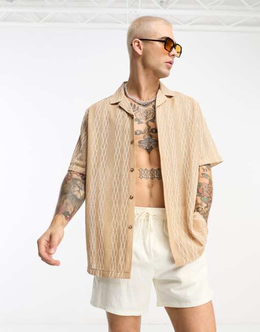 ASOS DESIGN – Fakturowana koszula o luźnym kroju z kołnierzykiem kubańskim
