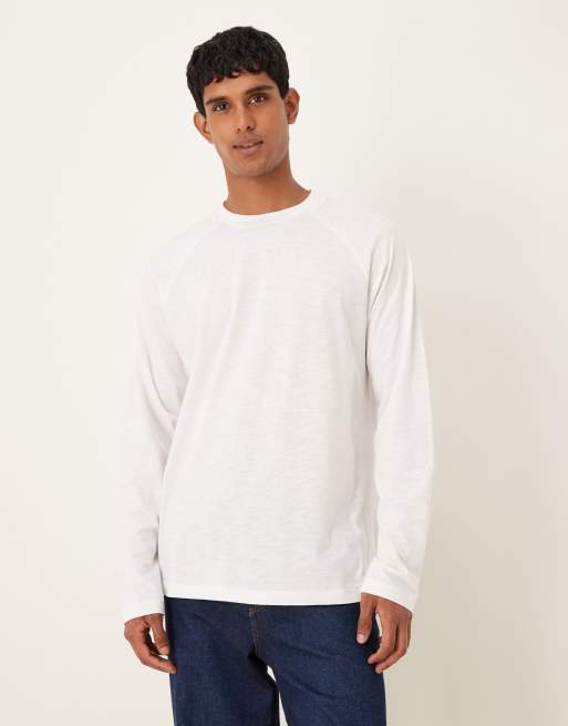 ASOS DESIGN – Fakturowany biały T-shirt o luźnym kroju z długimi rękawami