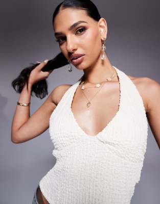 ASOS DESIGN – Fakturowany top z dekoltem halter w kolorze kości słoniowej