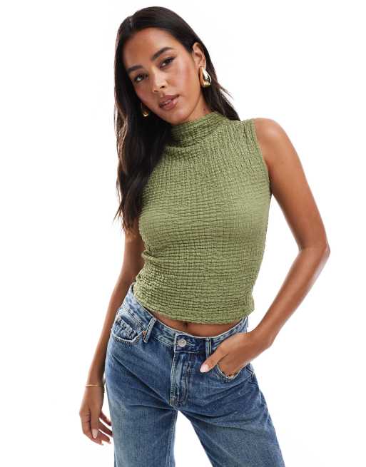 ASOS DESIGN – Fakturowany top z zabudowanym dekoltem w kolorze khaki