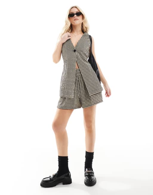 ASOS DESIGN – Fakturowany zestaw w kratkę vichy: kamizelka o wydłużonym fasonie i bokserki