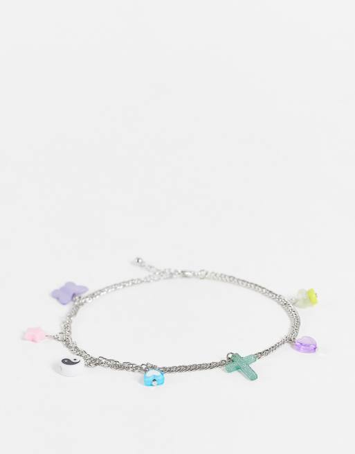 ASOS DESIGN – Festival – Gruba bransoletka na kostkę z kolorowymi zawieszkami
