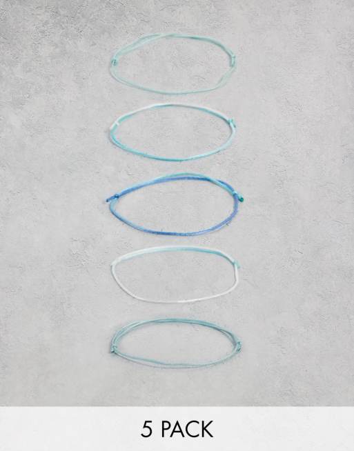 ASOS DESIGN – Festival – Zestaw 5 festiwalowych bransoletek w odcieniach niebieskiego