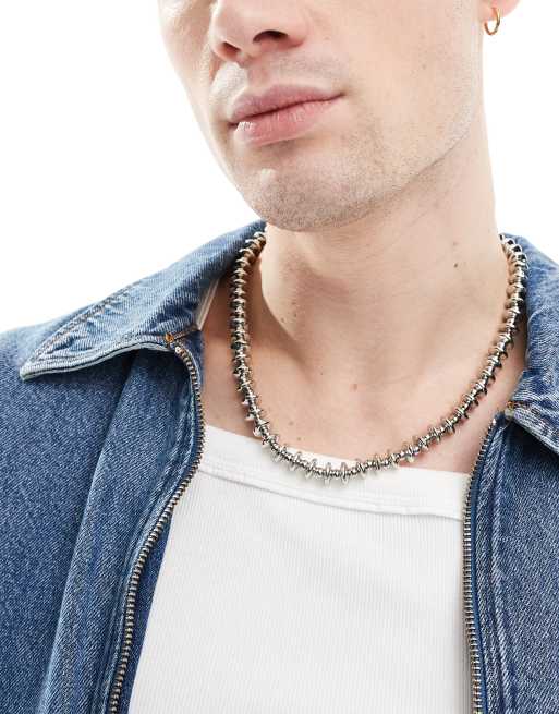 ASOS DESIGN – Festiwalowy koralikowy naszyjnik w kolorze srebrnym