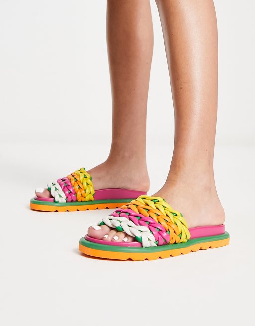 ASOS DESIGN – Fiction – Kolorowe plecione sandały na płaskiej podeszwie