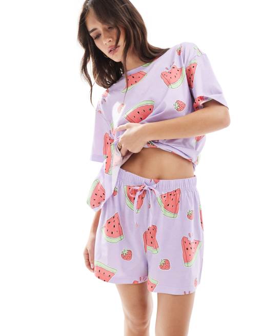ASOS DESIGN – Fioletowa piżama z nadrukiem w arbuzy: T-shirt oversize i szorty