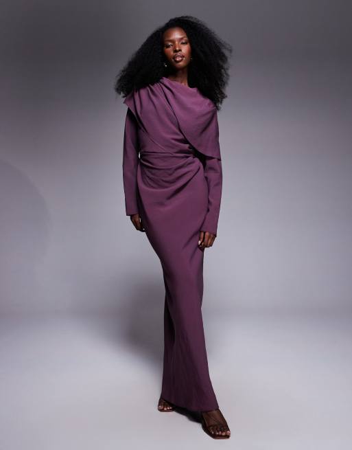 ASOS DESIGN – Fioletowa sukienka maxi z zabudowanym, drapowanym dekoltem