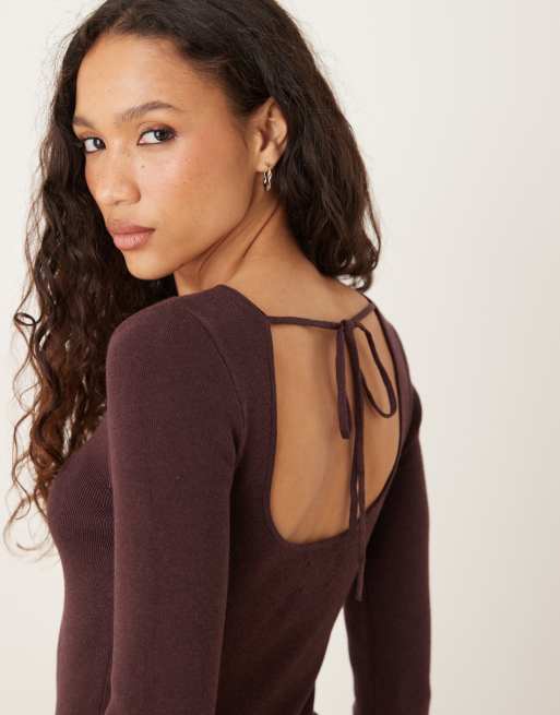 ASOS DESIGN – Fioletowy dzianinowy top z wiązaniem z na plecach
