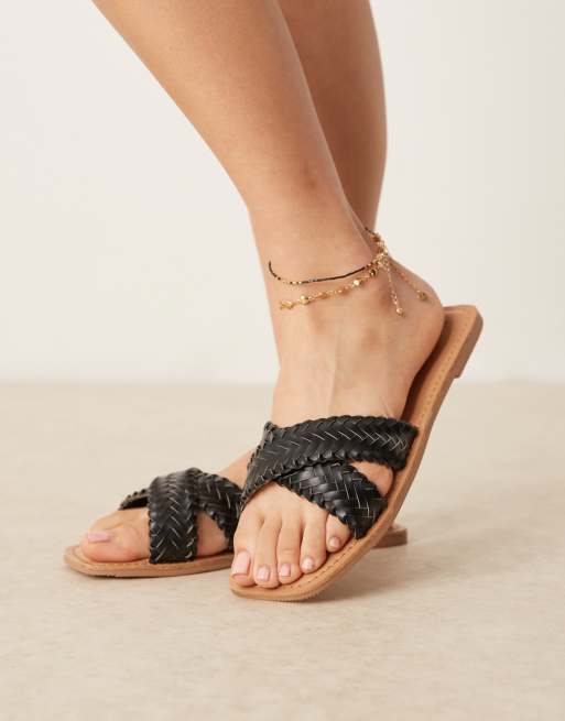 ASOS DESIGN – Flossie – Czarne plecione płaskie sandały