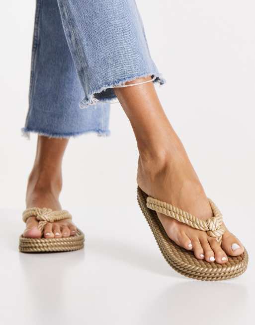 ASOS DESIGN – Flow – Jasnobrązowe klapki ze sznurka