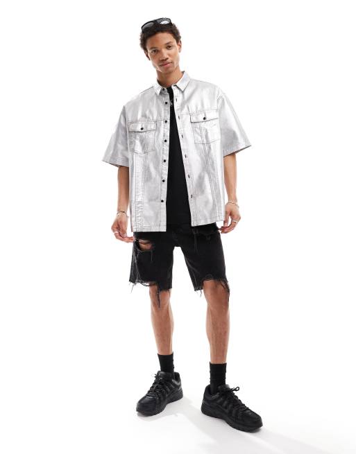 ASOS DESIGN – Foliowana srebrna koszula jeansowa oversize o pudełkowym kroju, część zestawu