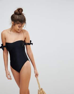 ASOS DESIGN FULLER BUST – Strój kąpielowy z dekoltem bardot wiązany na ramionach