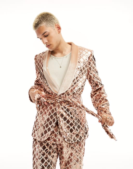 ASOS DESIGN – Garnitur w cekinowe romby w kolorze szampana