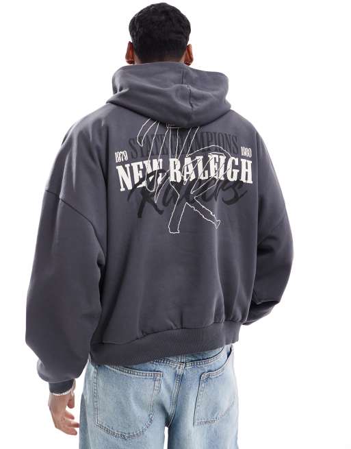 ASOS DESIGN – Grafitowa bluza o fasonie extreme oversize z kapturem, efektem sprania i nadrukiem na plecach