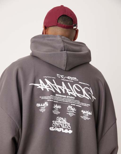 ASOS DESIGN – Grafitowa bluza o fasonie extreme oversize z kapturem i nadrukiem z napisem na plecach