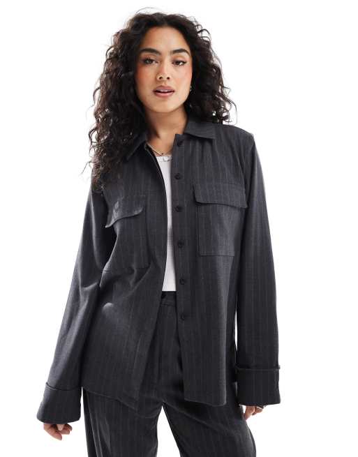 ASOS DESIGN – Grafitowa dopasowana koszula szczotkowana w paski, część zestawu