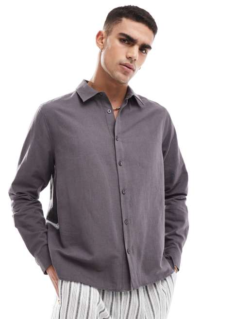 ASOS DESIGN – Grafitowa koszula o pudełkowym kroju z imitacji lnu