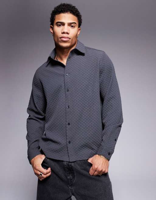 ASOS DESIGN – Grafitowa koszula w kratę o pudełkowym kroju