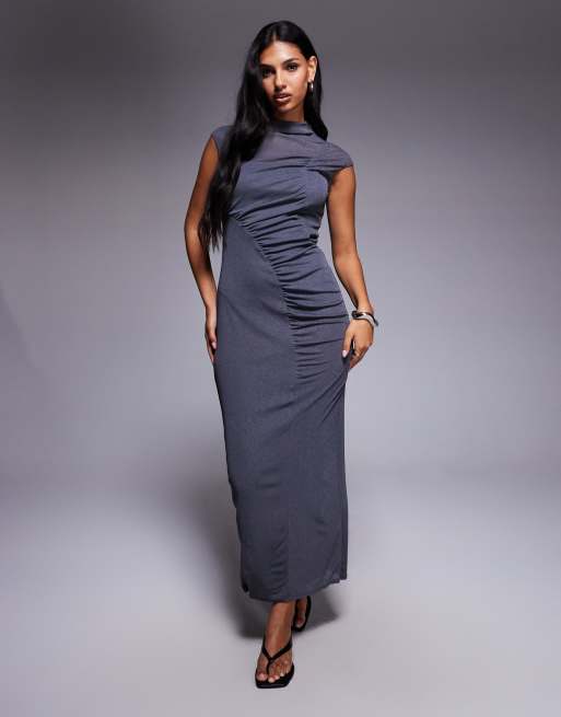 ASOS DESIGN – Grafitowa sukienka midi z drapowaniem z przodu