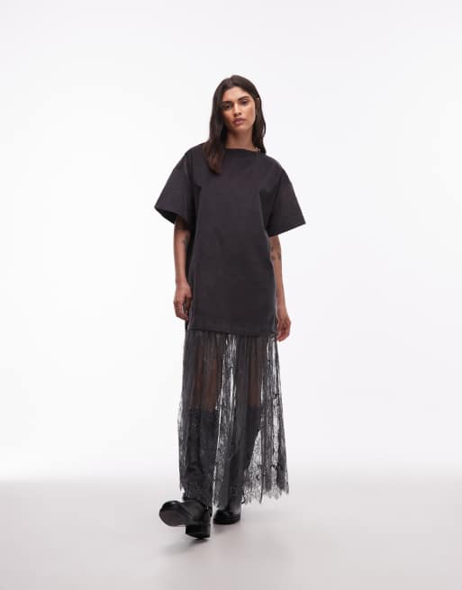 ASOS DESIGN – Grafitowa sztruksowa sukienka mini z koronkową spódnicą