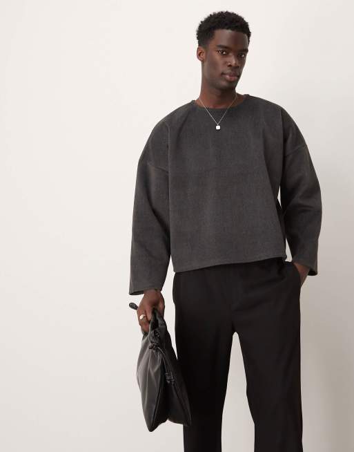 ASOS DESIGN – Grafitowa teksturowana bluza polarowa o pudełkowym fasonie super oversize