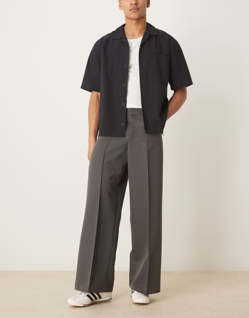 ASOS DESIGN – Grafitowe eleganckie spodnie o luźnym kroju z zaszewkami z przodu