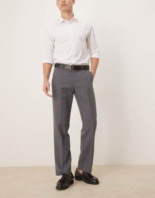 ASOS DESIGN – Grafitowe eleganckie spodnie z prostymi nogawkami z wełnianego diagonalu