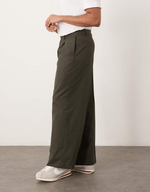 ASOS DESIGN – Grafitowe eleganckie szczotkowane spodnie z luźnymi nogawkami i zakładkami z przodu